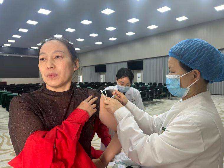 讲座采用“线下+线上直播”同步进行,场外员工通过“潜江融媒”视频号观看学习。活动现场还设置了满意度调查和流感疫苗免费接种服务。