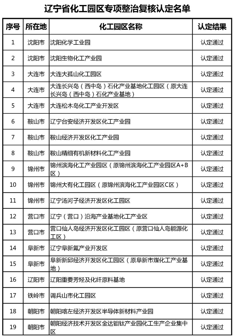 近日,辽宁省工业和信息化厅等七部门联合发布通知,公布了辽宁省化工园区专项整治复核认定名单,沈阳化学工业园等26家化工园区通过认定,2家园区取消认定资格。