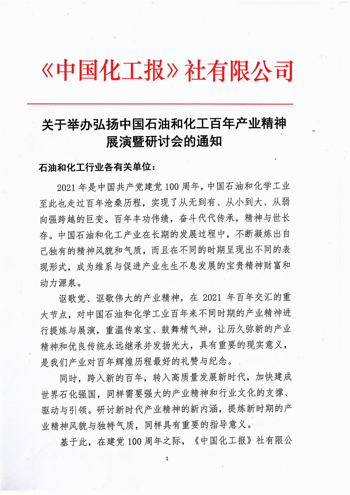 受疫情影响,根据国务院联防联控机制常态化防控要求,目前多地人员进京受限。为了保障大家的健康与安全,经《中国化工报》社有限公司商定,原定于8月30日在北京京都信苑举办的弘扬中国石油和化工百年产业精神展演暨研讨会改为线上直播方式举行,时间为下午1:30。后续详情请继续关注微信公众号“中国化工报”,感谢您的关注。