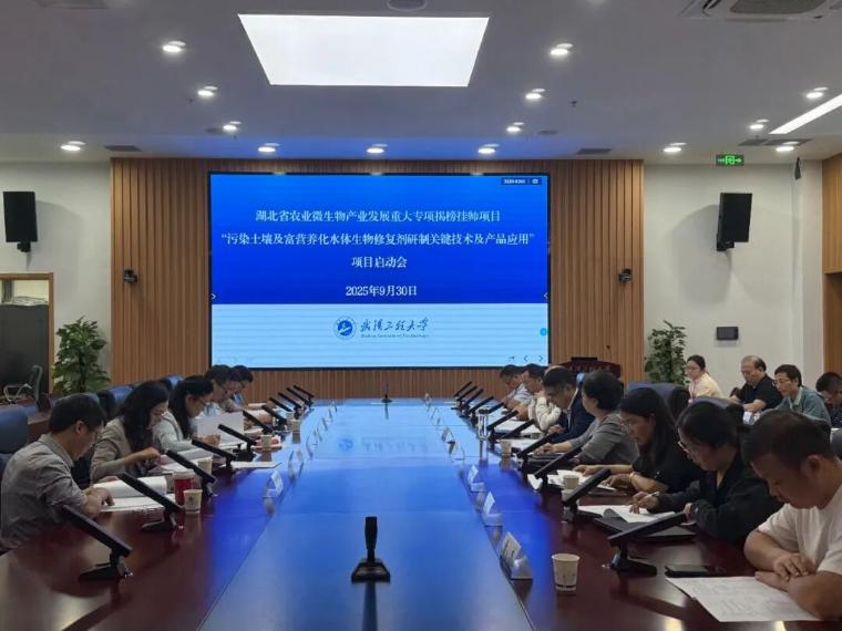 中化新网讯 9月30日,湖北省农业微生物产业发展重大专项揭榜挂帅项目——“污染土壤及富营养化水体生物修复剂研制关键技术及产品应用”项目启动会在武汉工程大学流芳校区顺利召开,湖北茂盛生物有限公司作为项目重要实施单位,共同推进“新型生物修复剂创制与应用示范”项目研究。