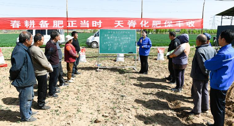 4月17日,长治市屯留区路村乡前苏村的麦田里暖意融融,天脊集团农化专员张静蹲在田埂上,捧着一把土壤,为围在身边的农户细致讲解冬小麦科学施肥要点:“天脊硝酸磷肥富含双氮双磷,速效氮助力作物早发快长,缓释磷保障后期养分供给,种肥保持5厘米以上间隔,既能避免烧苗,又能实现稳产增产。”讲解间隙,几辆满载天脊化肥的运输车驶入村落,车身“春耕备肥正当时,天脊化肥保丰收”的标语格外亮眼,成为春耕田野上的生动风景。