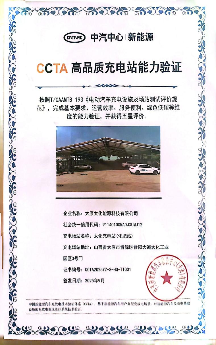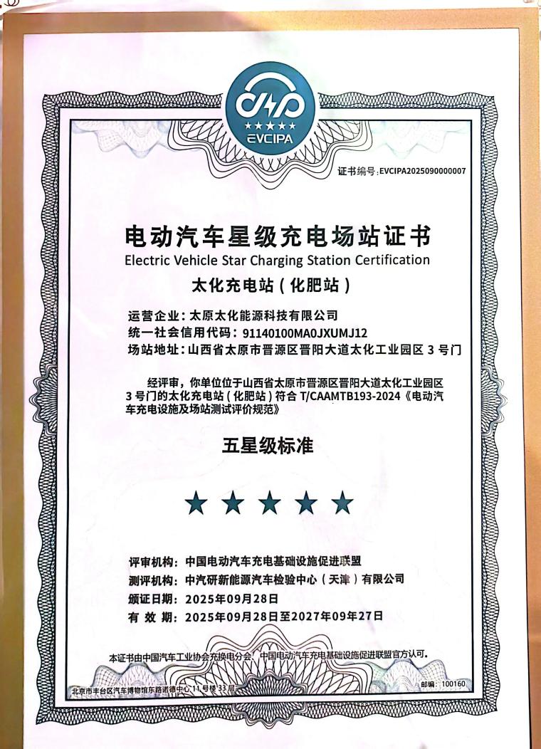 日前,在中国电动汽车充电基础设施促进联盟(以下简称“中国充电联盟”)发布的星级充电场站评定结果中,太化集团能源科技公司充电站(化肥站)凭借在安全管理、运营效率、服务品质等方面的突出表现,荣获“五星级充电场站”殊荣,成为太原区域内充电服务标杆。